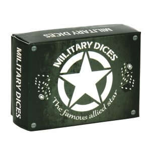 Set van 6 militaire dobbelstenen met als opdruk de Amerikaanse allied star. Leuk voor spelletjes als yahtzee etc.