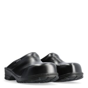 Stevige klomp met brede pasvorm en een voetbed van hout. Met ProNose voor extra duurzaamheid. open hak klomp stalen neus en PU zool + kruipneus