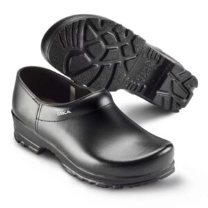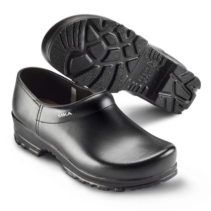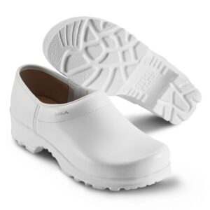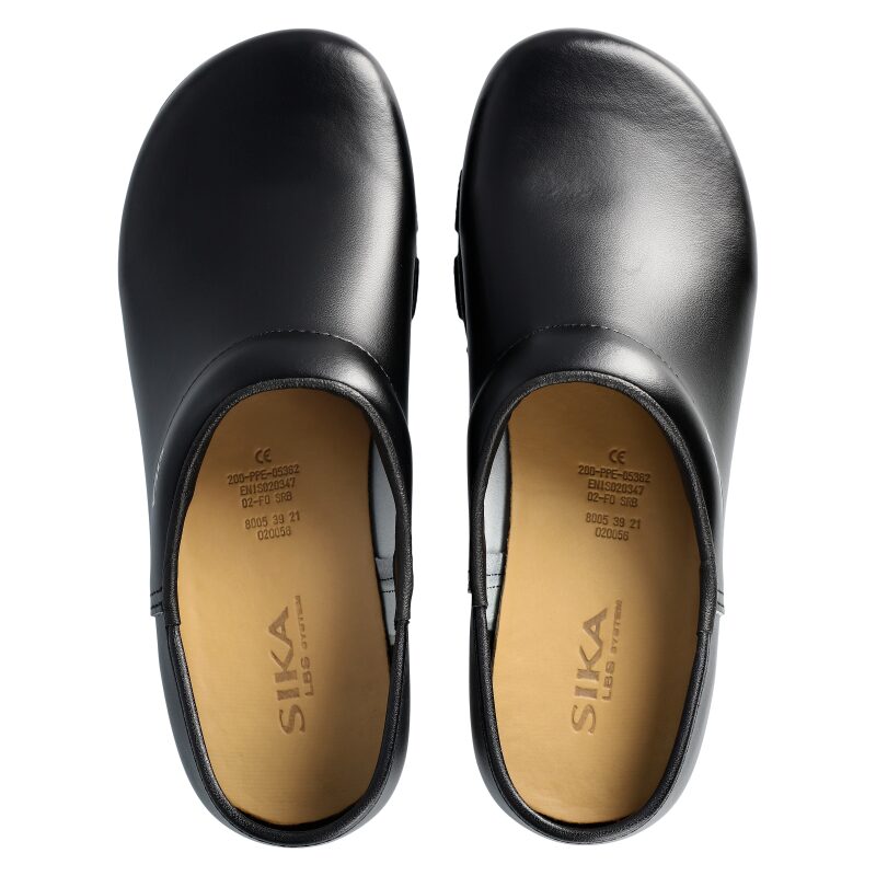 Comfortabele en flexibele klomp. Brede pasvorm en goede schokabsorptie. Zacht en comfortabel LBS-voetbed van schuim en leer, SRB, Anti-slip, Antistatisch, Ademend, Waterbestendig.