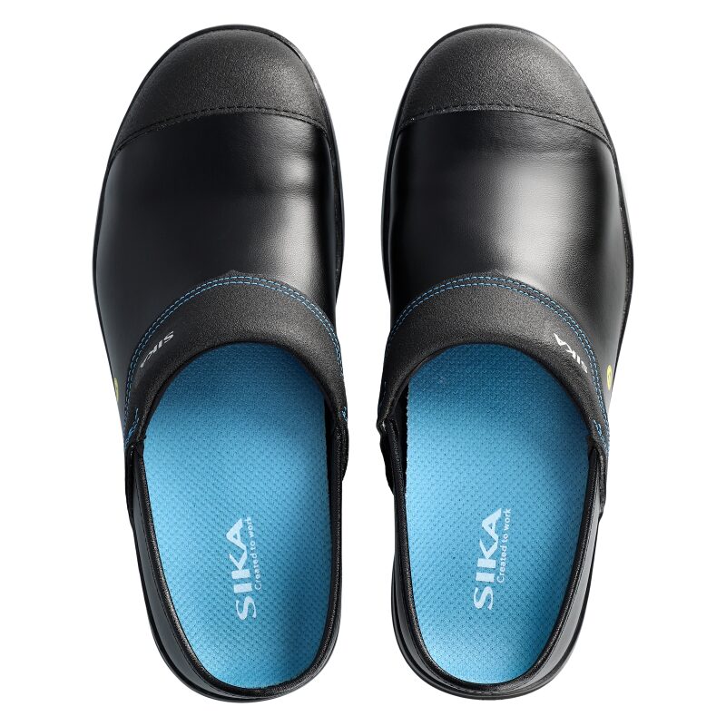 Lichtgewicht en flexibele klomp gemaakt van ademend en duurzaam Permair® leer. Met zachte wreefvoering voor extra comfort en stijlvolle blauwe contrastnaden. Antislip en schokabsorberende buitenzool gecombineerd met een zachte, schokabsorberende en vervangbare inlegzool die uitzonderlijke ondersteuning biedt aan de voetboog. ProNose van lichtgewicht en duurzaam LIBA® Smart-materiaal voor extra duurzaamheid. ESD-goedgekeurd