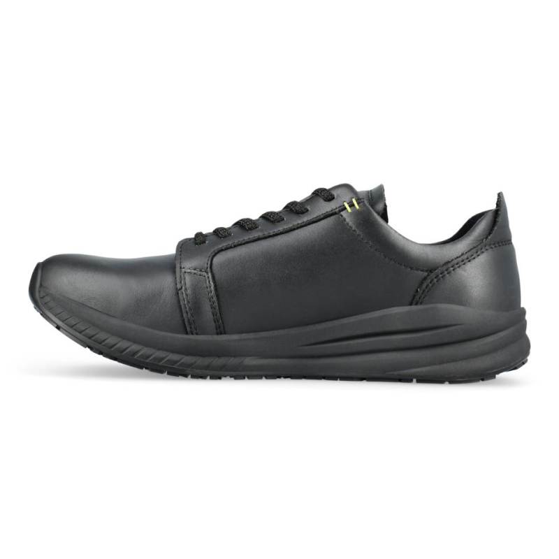 Werkschoen ontworpen als sneaker. Lichtgewicht, duurzaam en comfortabel. Gemaakt van waterafstotend en ademend volnerfleer. Met vochtafvoerende voering. Extra slipvaste, flexibele en schokabsorberende buitenzool, die zorgt voor een goede grip op gladde ondergronden. Met stabiliserende schacht die het risico op verdraaiingsblessures vermindert. De inlegzool is ademend, zacht en vochtafvoerend. De schoenen zijn PVC-vrij, metaalvrij en ESD-goedgekeurd.
