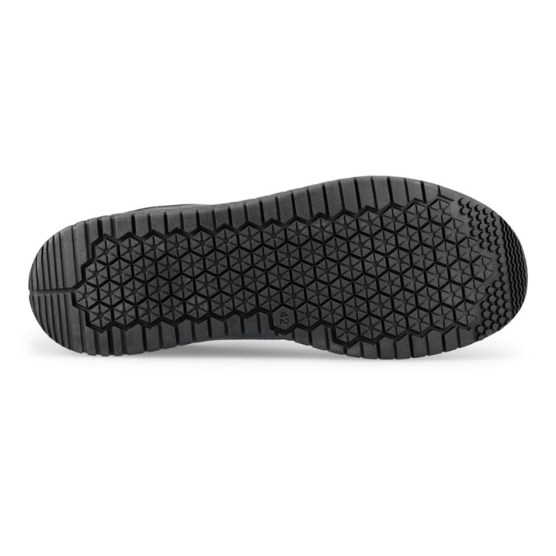 Een combinatie van een rubberen loopzool en een tussenzool van EVA-schuim zorgt voor een slijtvaste, lichtgewicht, flexibele en bijzonder schokabsorberende schoen. Luchtgaatjes in de middenzool en de loopzool sturen energie van elke stap terug en leveren voldoende energie voor een hele werkdag.