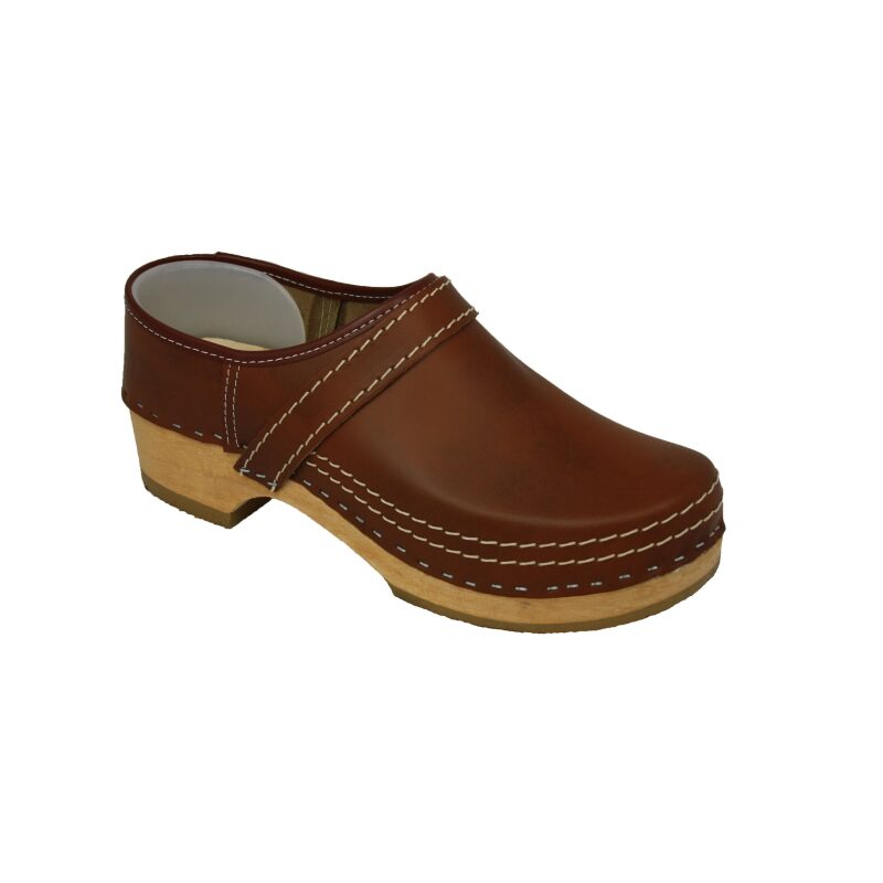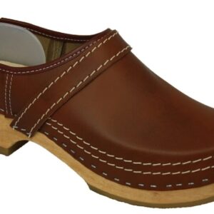 Dichte Hak Klomp Leren kap met riem, Houten zool, Voorzien van antislip rubberzool, Orthopedisch gevormd voetbed, Extra zware kwaliteit leer, Olie- & Zuurbestendig