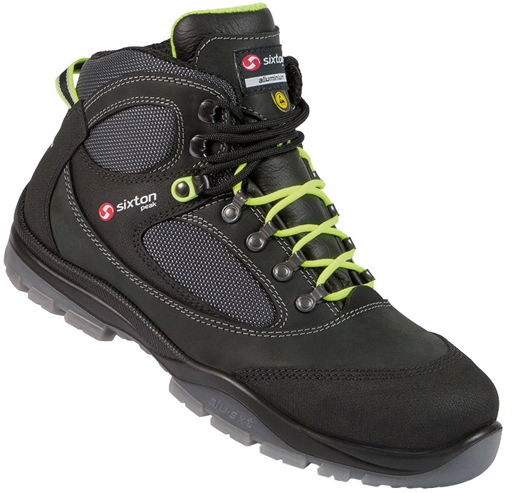 Hoog S3, Sound ESD Class 3, Gevet Nubuck leder, Airplus 3D Dual Micro voering, Softfit inlegzool, PU/PU ESD-SRC loopzool, ALU-SXT aluminium veiligheidsneus, K+ Antiperforatie Plus tussenzool.