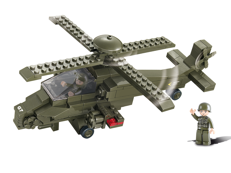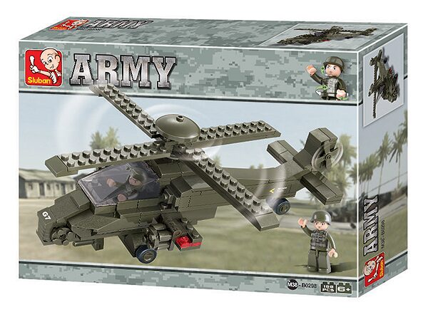Sluban Attack Helicopter M38-B0298 - Bouw je eigen gevechtshelikopter! Maak deel uit van spannende missies en bouw je eigen attack helicopter met deze indrukwekkende bouwset van Sluban. Speciaal ontworpen voor liefhebbers van militaire thema's, biedt deze bouwset urenlang bouwplezier én een stoer eindresultaat. Met zijn gedetailleerde ontwerp en stevige onderdelen laat deze helikopter niets te wensen over. Het unieke aan Sluban is dat het compatibel is met andere grote bouwsteenmerken, zoals LEGO®. Hierdoor kun je probleemloos jouw bestaande bouwsets uitbreiden met de realistische en stoere ontwerpen van Sluban. Het lichte gewicht van slechts 323 gram maakt het een eenvoudig mee te nemen bouwset, ideaal voor jonge bouwers en verzamelaars.