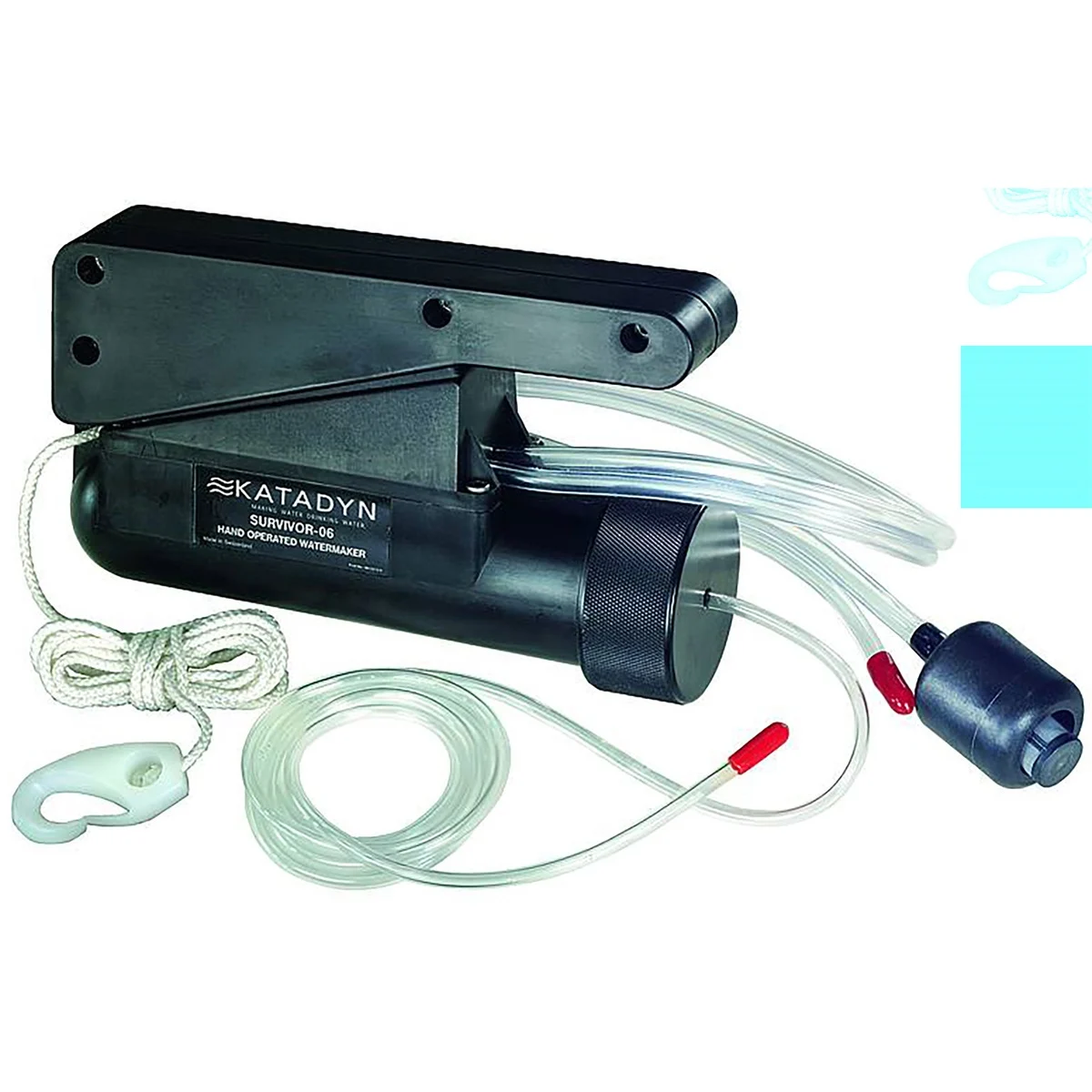 Katadyn Survivor 06 LS is de kleinste draagbare ontziltingsunit ter wereld en zet zout water om in drinkbaar zoet water. Dankzij zijn compacte ontwerp en efficiënte werking wordt deze ontzilter wereldwijd gebruikt als essentieel onderdeel van overlevingspakketten op zee en in noodsituaties. Dit duurzame apparaat is ontworpen voor gebruik door 1 tot 6 personen en biedt een betrouwbare oplossing voor het verkrijgen van veilig drinkwater, zelfs in de meest extreme omstandigheden.