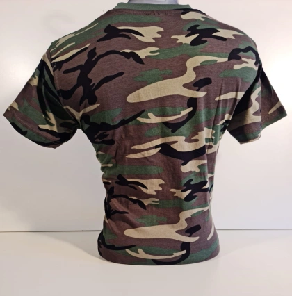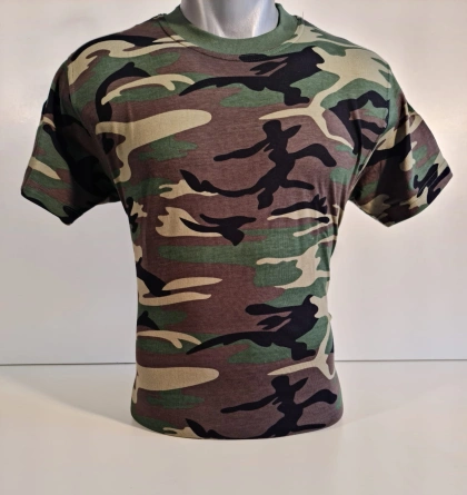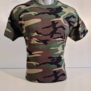 Dit T-shirt is perfect voor iedereen die op zoek is naar een duurzame en comfortabele toevoeging aan hun garderobe, met de iconische uitstraling van woodland camouflage.