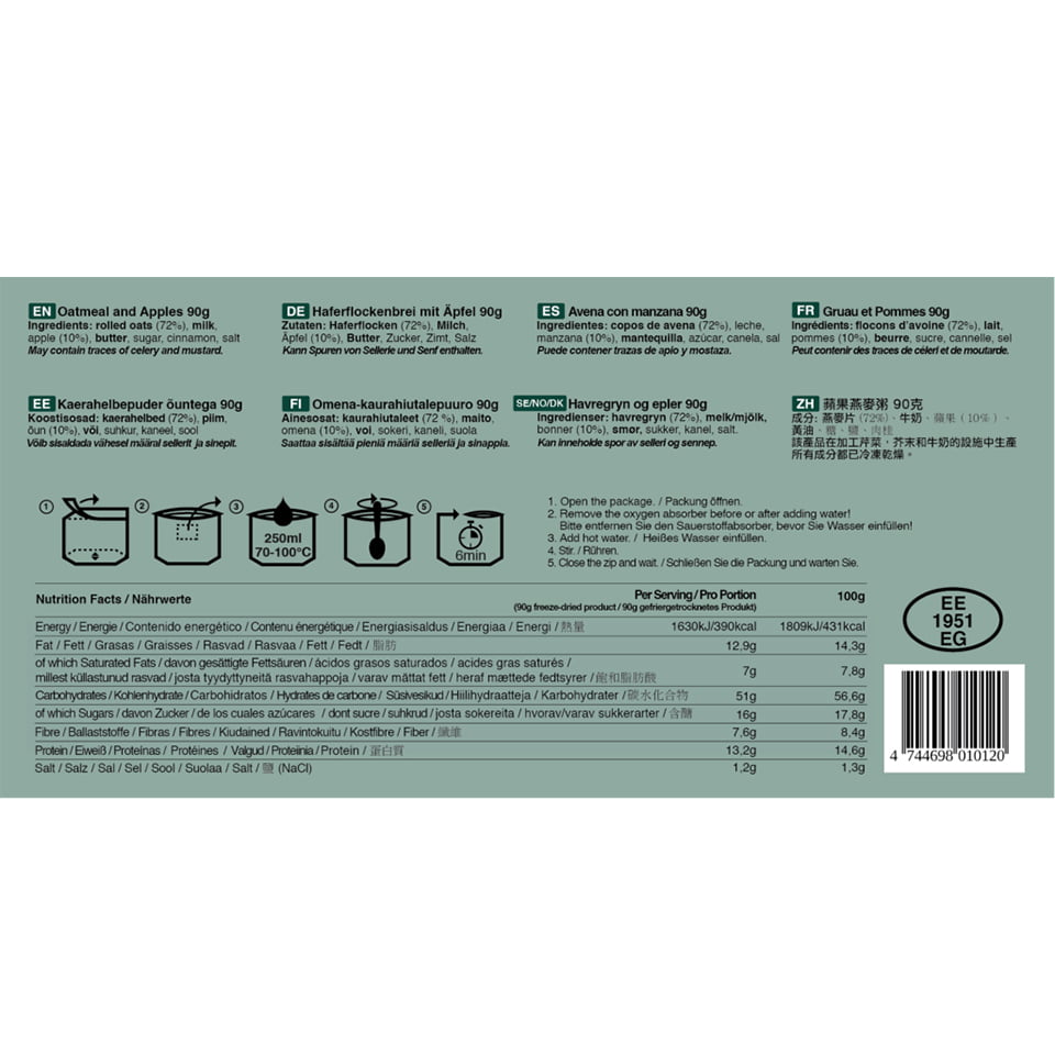 Havermout (72%), melk, appel (10%), boter, suiker, kaneel, zout.