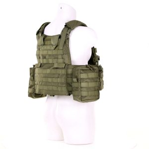 Voorzien van Molle over het gehele vest voor het monteren van pouches naar keuze. Incl. Pouches van de afbeelding.