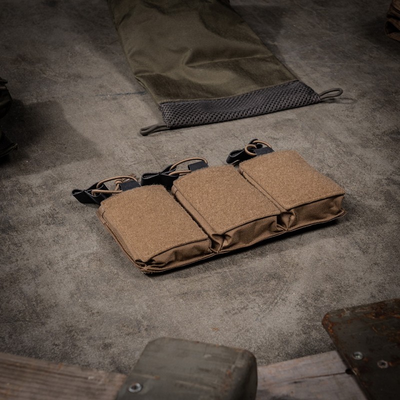 Deze Triple M4 Pouch kan bevestigd worden op het TF-2215 Modular Vest en Rig, maar ook op andere vesten en platen die over klittenband beschikken.
