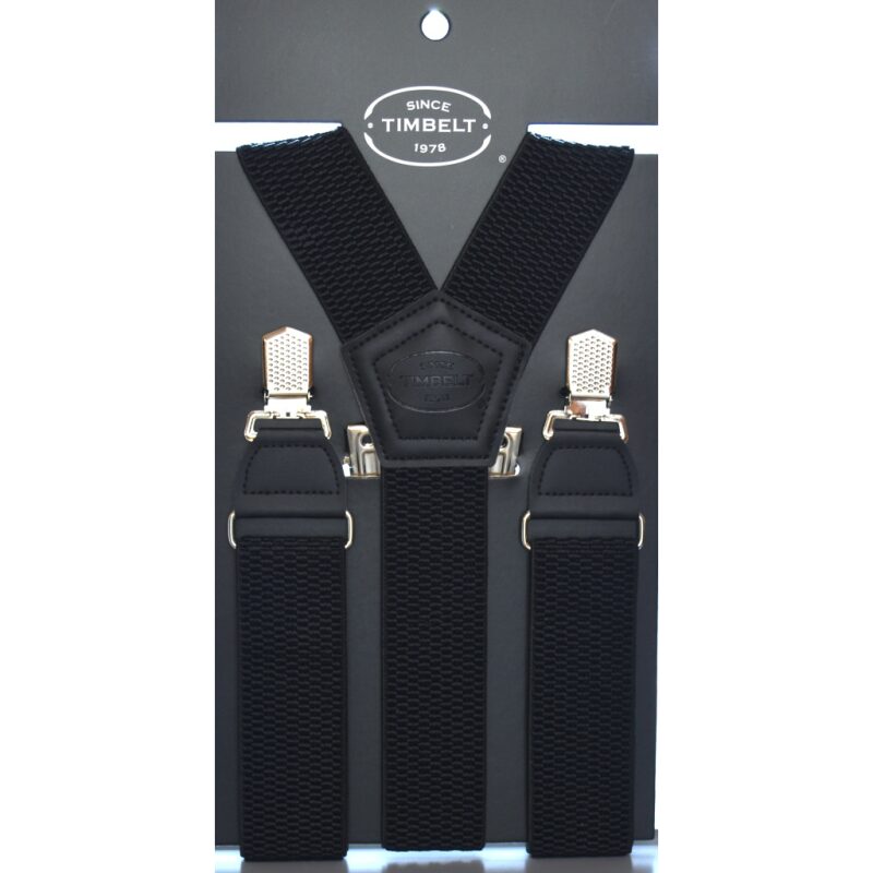 De bretels van Timbelt staan bekend om degelijke clips. Twee voor en twee achter. Daarmee ben je verzekerd van een stevige bevestiging aan jouw broek.