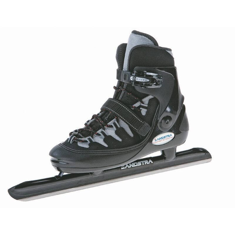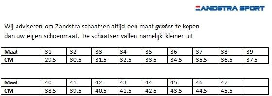De stalen Zandstra schaats (laag model). Oppervlakte bewerking: Poedercoating (Epoxy). De voordelen hiervan zijn geen roestvorming en ook het afbladeren van het nikkel behoort tot het verleden. De Zandstra semi soft schoen (Low Heel). Deze combineert een zeer laag gewicht met veel comfort. De schoen geeft steun op die plaatsen waar het nodig is. Vermoeidheid en blaren behoren tot het verleden. Sluiting door combinatie van veter, gesp en velcro strap. Zeer comfortabele schoen voor het lange afstand.